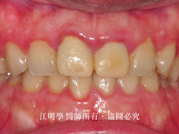 治療前:牙齒泛黃嚴重、牙齒磨損。