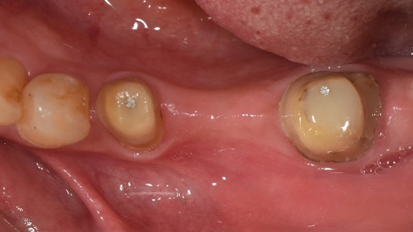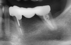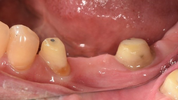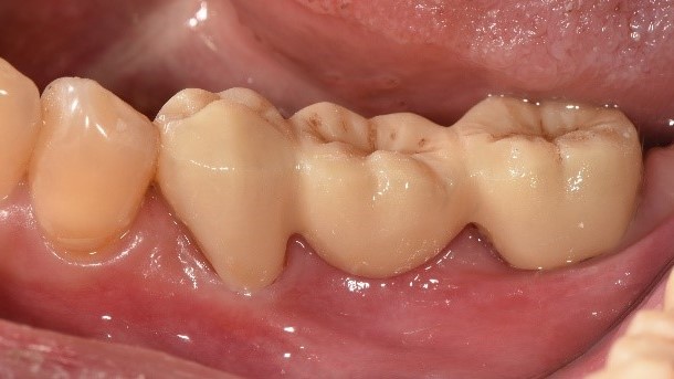 原先病人做牙橋的大臼齒因為牙根發炎,疼痛難耐,前來做根管治療,但因為大臼齒牙根末端神經較複雜、且有張口困難的問題,因此更增加了做根管治療的困難度,在經醫師評估後,建議做蓄意再植手術。