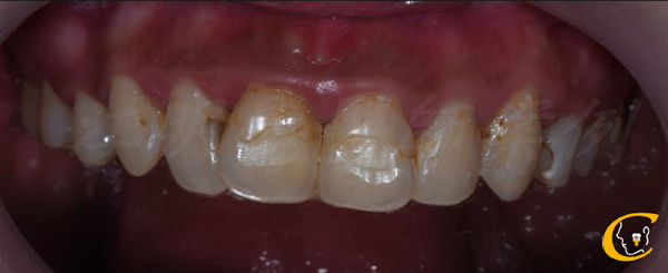 牙齒顏色泛黃。