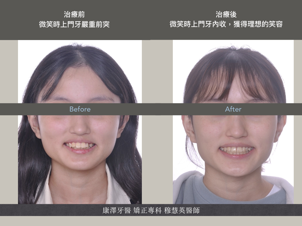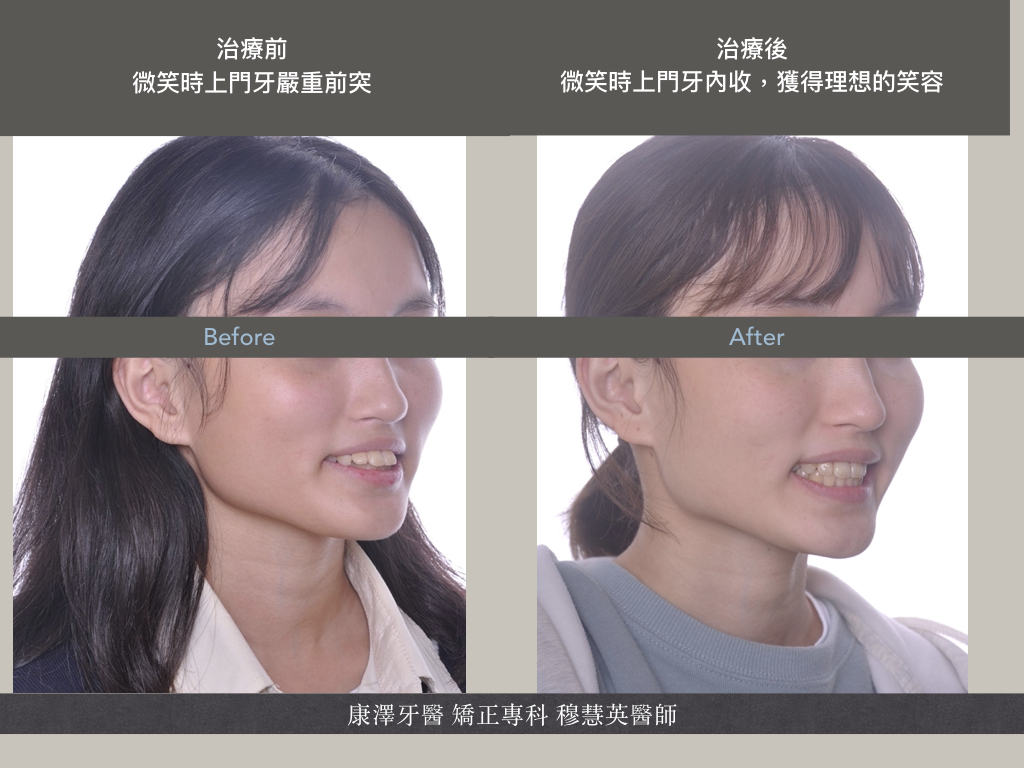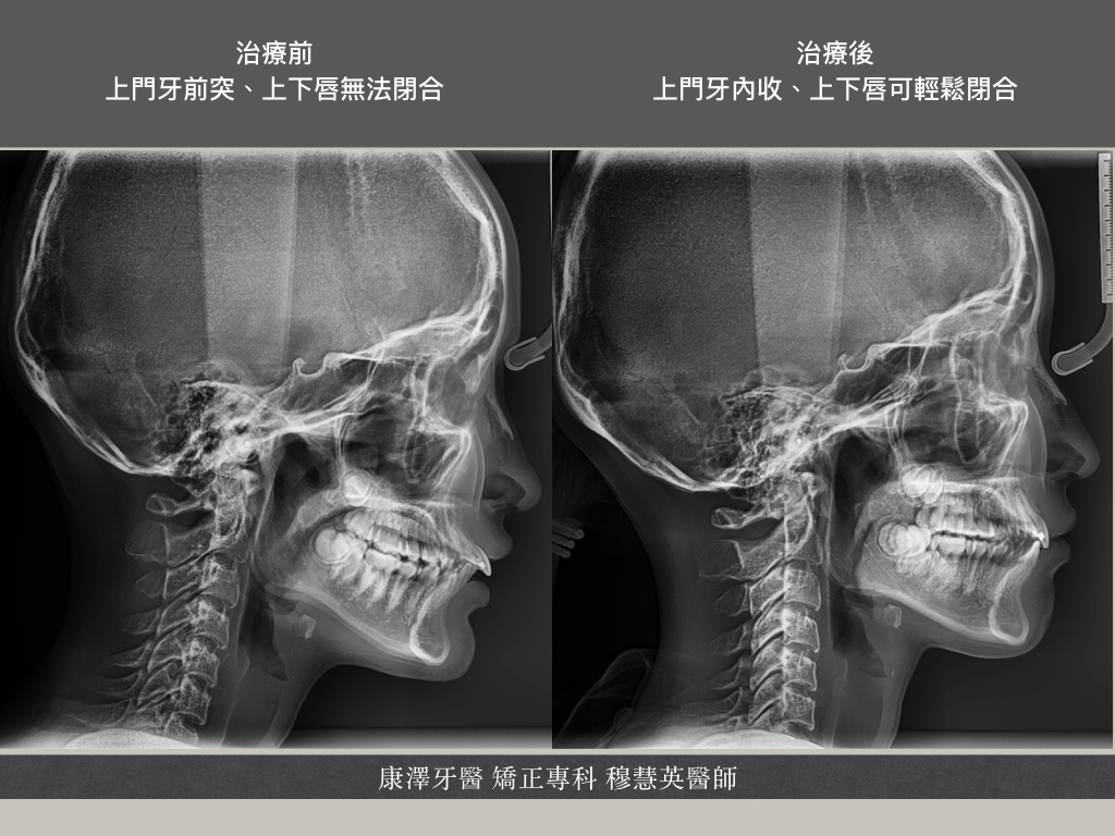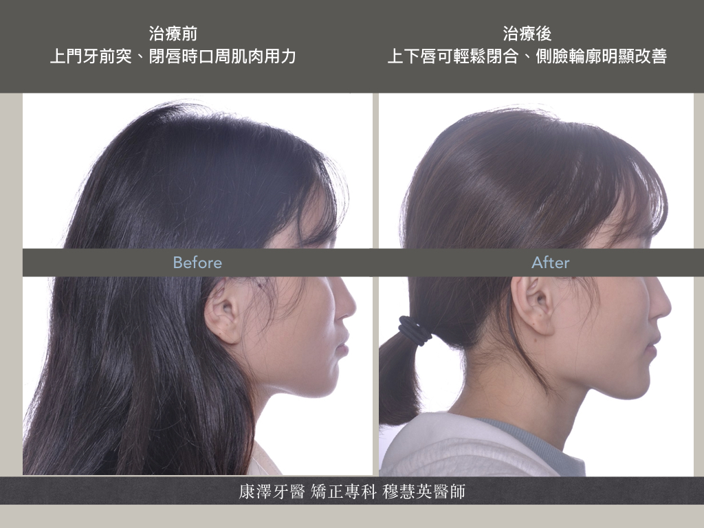 改善前牙突出問題,唇部閉合改善,但臉部骨骼改變有限 |