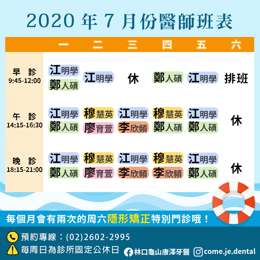 夏天來了!又到了吃冰的季節~ 吃冰時牙齒如果容易感到酸痛,除了使用抗敏感牙膏,尋求專業牙醫師檢查,才是解決敏感性牙齒的根本之道唷! 週六醫師排班 7/4 江明學醫師、李欣頻醫師、廖育萱醫師 7/11 穆慧英醫師、鄭人碩醫師 7/18 廖育萱醫師 7/25 廖育萱醫師、鄭人碩醫師 醫師休假 7/2、7/8、7/16、7/22、7/30 李欣頻醫師休假 聯絡我們 即時預約 02-2602-2995 LINE 線上預約 FB 線上預約 分享到
