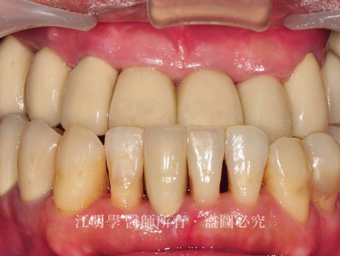 治療前:牙肉因剌激而萎縮,假牙逐漸脫落,且因清潔不易,口腔常常伴隨嚴重異味。